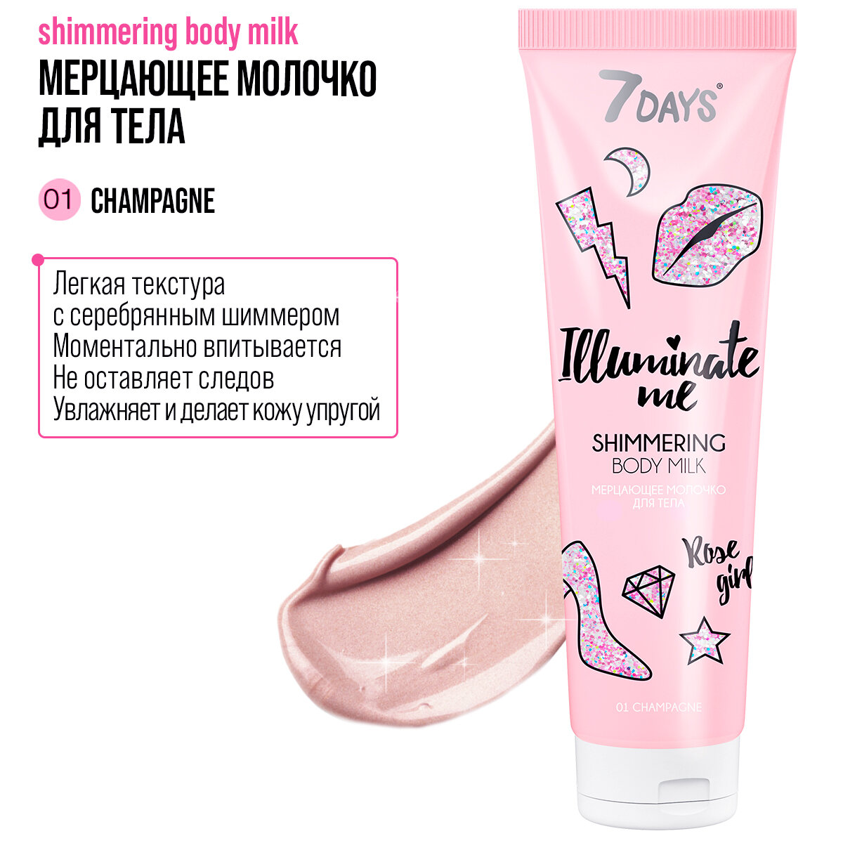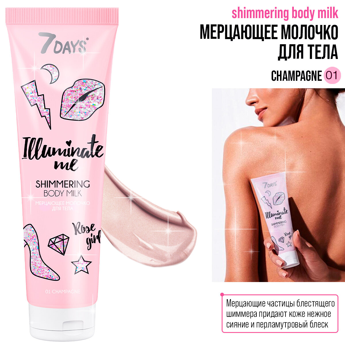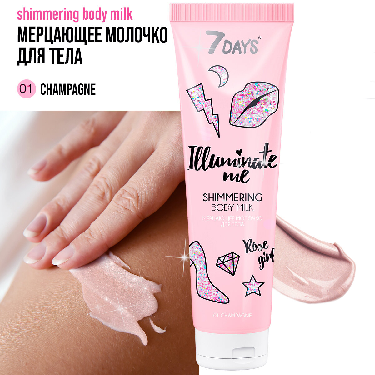 Молочко 7 Days мерцающее Illuminate me rose girl 150 мл (ВИ001)