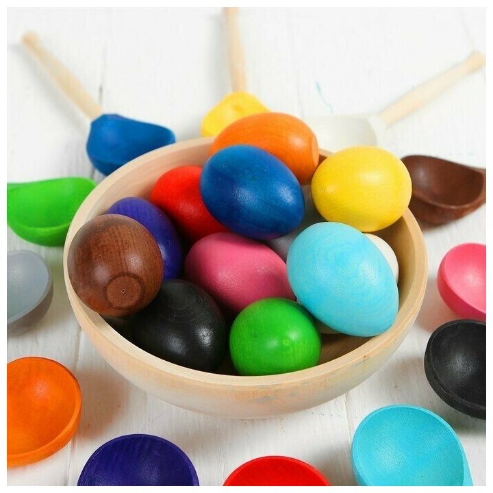 Деревянная игрушка Уланик сортер Монтессори Яички и ложки 12 цветов