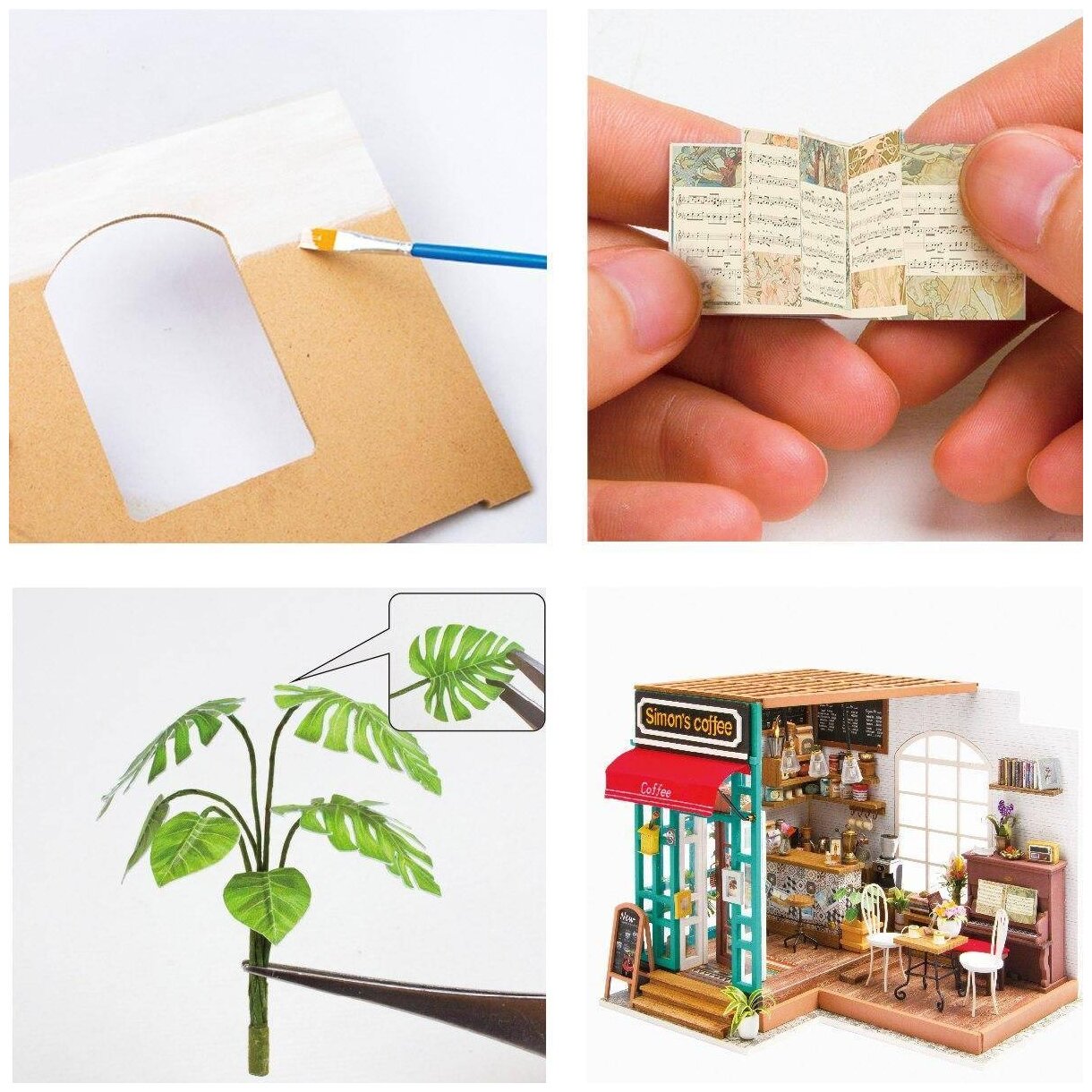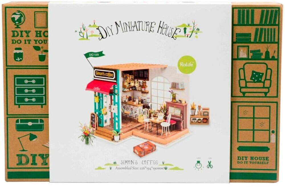 DIY House Кафе Simon's Caffee ㅡ это интерьерный конструктор для миниатюрной комнаты. Данный набор предназначен для моделирования трехмерного кафе. Simon's Caffee ㅡ это место, которое ассоциируется с уютом, кофе и любимыми сладостями. Каждый элемент декора необходимо собирать самостоятельно. В набор входят бумажные и деревянные составляющие, а также клей ПВХ и пинцет. Интерьерный конструктор ㅡ это интересное времяпрепровождение и для детей, и для взрослых. Собирать необходимо все: даже стены миниатюрного кафе.