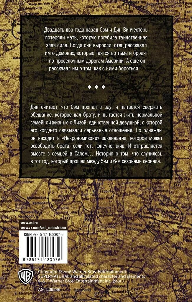 Книга для настоящих фанатов!!! Это часть истории сериала, интересная и мистическая... раскрывает события года, когда Сэм (якобы) был в аду. Захватывающий сюжет... Интересные персонажи, книга - ещё одна увлекательная история о братьях Винчестерах. Рекомендую к прочтению. Что касается качества книги: плотная обложка, удобный шрифт, качественная бумага.