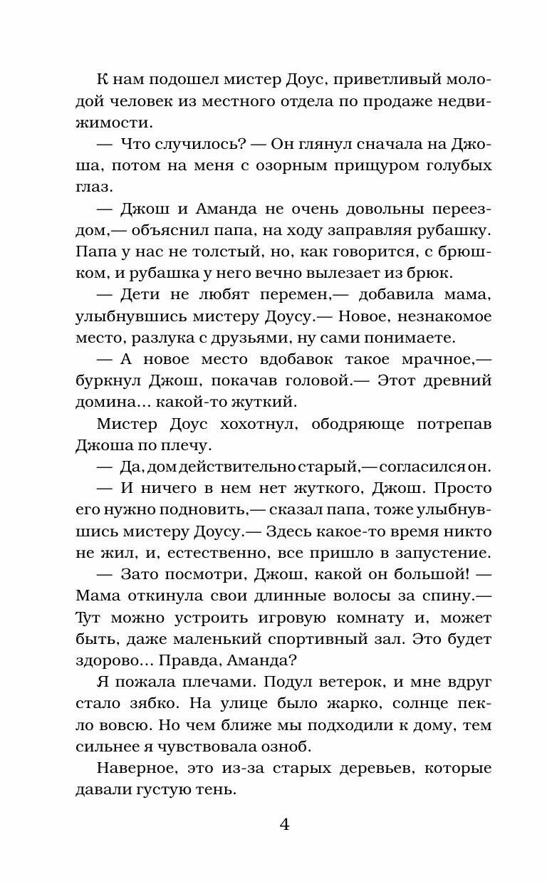 Джош и Аманда вместе с родителями переезжают в старинный особняк, самый мрачный и зловещий во всей округе. Им даже кажется, что здесь могли бы водиться призраки. Но, разумеется, мама с папой им не верят и лишь отмахиваются от их подозрений. "Ничего страшного, привыкнете! - говорят они. - Лучше идите погуляйте, может, заведете себе новых друзей".