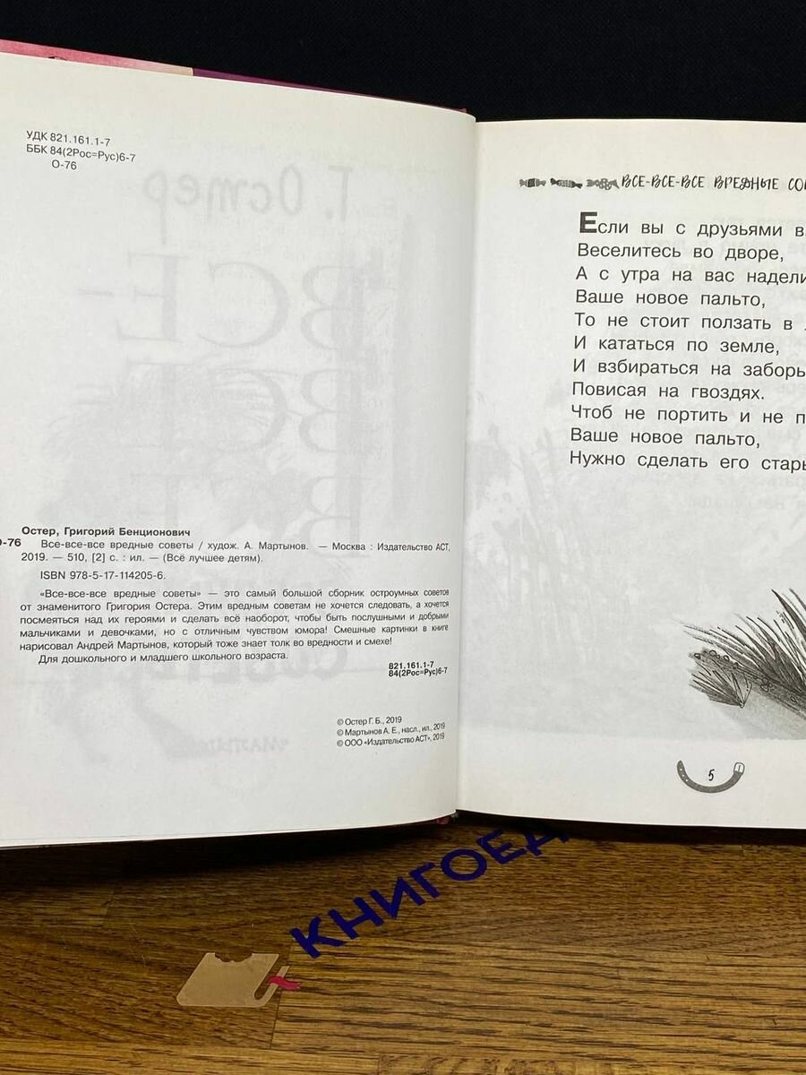 Сервис сравнения цен СкидкаГИД предлагает сравнить цены на товар «Книга: Все-все-все вредные советы (Остер Григорий Бенционович, Мартынов Андрей Ефимович (иллюстратор)); АСТ, 2019»