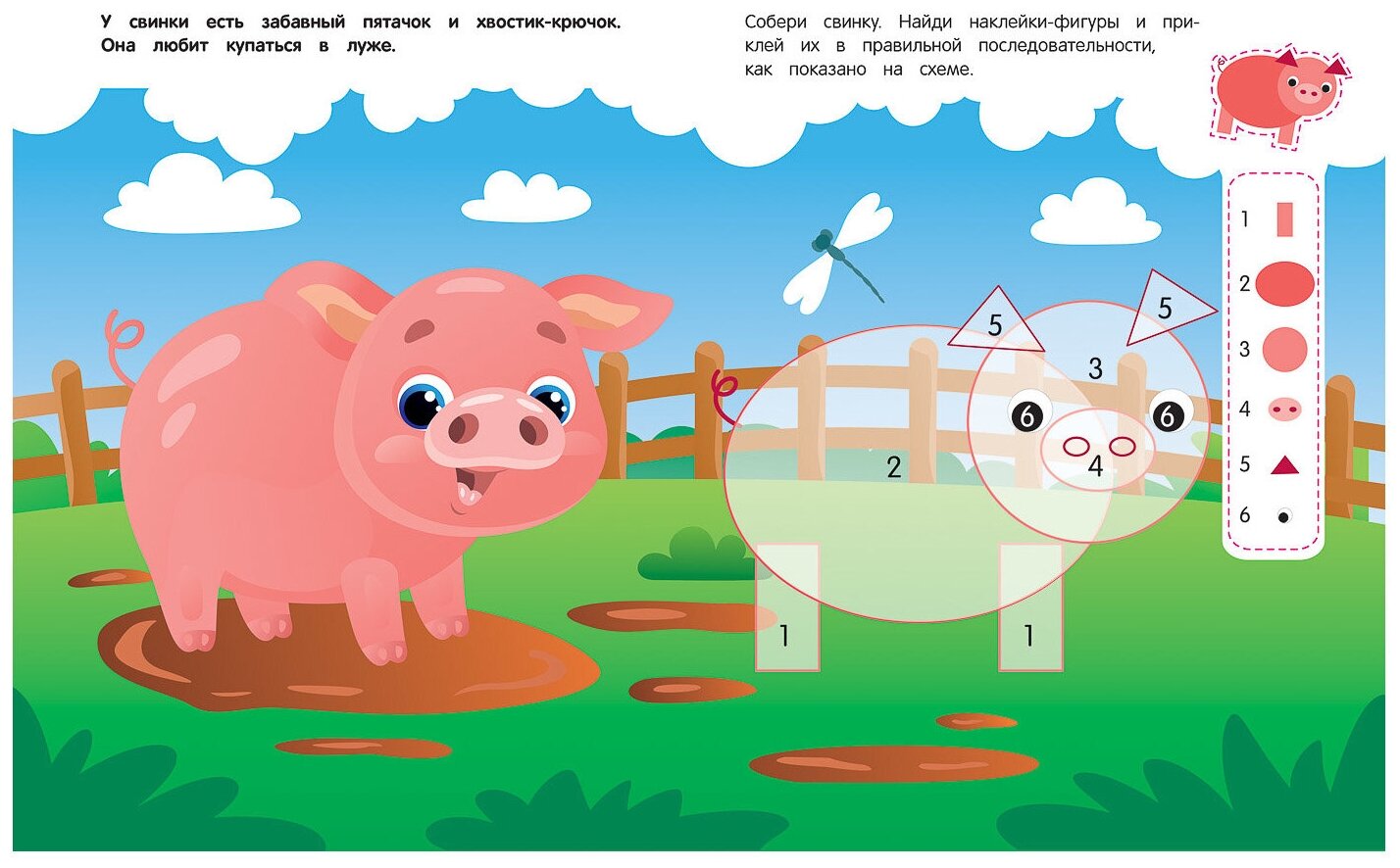 Ваш малыш фантазёр, любит творчество и обожает приклеивать наклейки? Тогда эта чудо-книга специально для него! На её страничках можно собрать забавных животных из ярких наклеек. Все наклейки строго геометрических форм, но стоит проявить фантазию - и они превратятся в животных фермы!