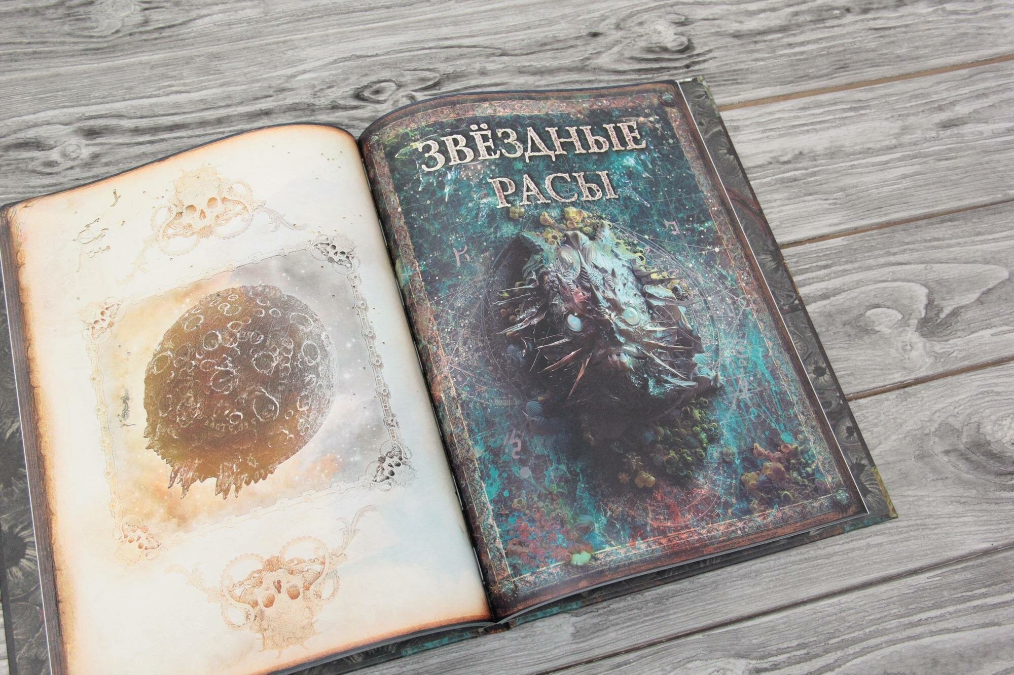 Сегодня наконец книга пришла, ждал с нетерпением с 11 января, как только узнал о ней, бдел за новостями о выходе, сразу оформил предзаказ, как только стал доступен) знаю, что звучит фанатично, но тем не менее) Наверное, в Хабаровске у меня она у первого появилась, на прилавках ее еще нет, и явно будет минимум через недели три) очень рад) пролистал с удовольствием, в первую очередь ознакомился с рисунками и часть описаний уже прочитал. Самое главное, что авторы ответственно подошли к изображению монстров, стараясь полностью придерживаться к описанию из первоисточников(по крайней мере крайне близко к моему восприятию), учитывая что у каждого художника даже Ктулху "свой" получится. Стилистика рисунков тоже радует, в книге можно увидеть два основных стиля изображения и оба хорошо вписываются. Кстати, признаться некоторые изображения древних даже удивили, что явно говорит о мастерстве художников, работавших над книгой) Для А4 формата и глянцевой бумаги книга достаточно легкая. Для подарка - книга очень даже годится, особенно для фанатов Мифов Ктулху. Более чем.. эта книга сама - подарок, за что авторам, огромнейшее спасибо!) Крайне рекомендую для ознакомления! ...и постарайтесь сохранить рассудок при знакомстве с данной адаптацией Некрономикона безумного Араба Альхазреда...