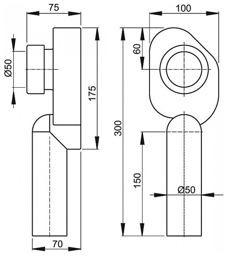 Вертикальный сифон для писсуара Данная модель используется для подключения писсуаров к канализации, расположенной перед стеной. Особенности В конструкции сифона сделано технологическое отверстие с пробкой для доступа к внутреннему изгибу улитки, что даёт возможность прочищать сифон при засоре. На задней стенке предусмотрено четыре площадки с отверстиями для крепления. Сварные швы выполнены при помощи ультразвука.