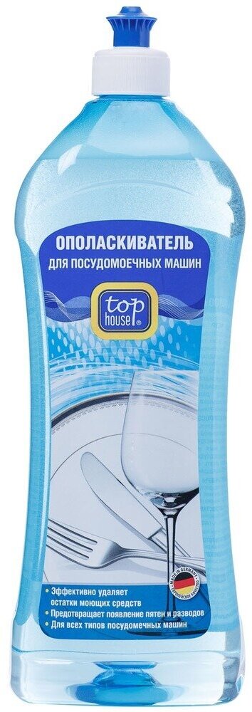 Ополаскиватель для посудомоечных машин Top House – обязательный атрибут, обеспечивающий качественное очищение тарелок, ложек, вилок и т.п. Он гарантирует удаление остатков моющих средств и способен устранить запахи еды. Состав жидкости исключает возникновение различных пятен. Кухонная утварь приобретает изумительный блестящий вид и получает свежесть. В нем напрочь отсутствуют различные виды красителей. Применение жидкости рекомендовано всемирно известными компаниями-производителями.
