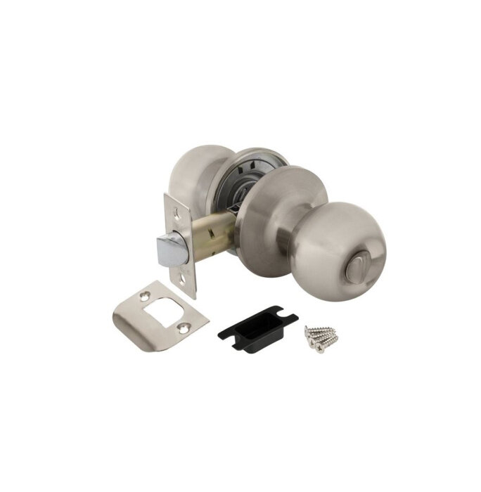 Комплект дверных ручек с защелкой (KNOB) Punto коллекции SIMPLE LIVING 6072 SN-B предназначен для установки в межкомнатные двери толщиной 35-45 мм. Подходит для дверей правого и левого открывания. Гальваническое покрытие прошло тест на устойчивость к коррозии в соляном тумане и соответствует 1 классу ГОСТ. Ресурс работы ручек-защелок более 150 000 циклов открывания/закрывания, что гарантирует безотказную работу двери более чем на 15 лет.< /p>