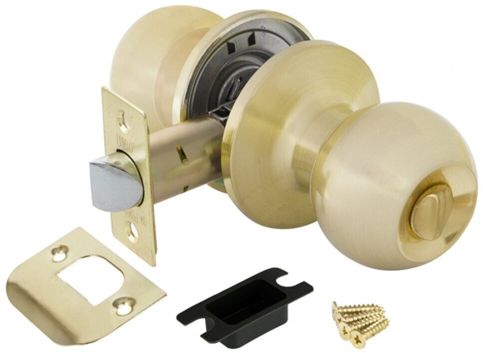 Комплект дверных ручек с защелкой (KNOB) Punto коллекции SIMPLE LIVING 6072 SB-B предназначен для установки в межкомнатные двери толщиной 35-45 мм. Подходит для дверей правого и левого открывания. Гальваническое покрытие прошло тест на устойчивость к коррозии в соляном тумане и соответствует 1 классу ГОСТ. Ресурс работы ручек-защелок более 150 000 циклов открывания/закрывания, что гарантирует безотказную работу двери более чем на 15 лет. Бэксет защелки регулируется - 60/70 мм. Материал изготовления: сталь. Модификация: фиксатор. Цвет: матовое золото. Комплектация: защелка, ответная планка с декоративной заглушкой, дверные ручки, крепежная фурнитура, шаблон и инструкция по установке.