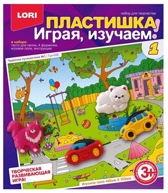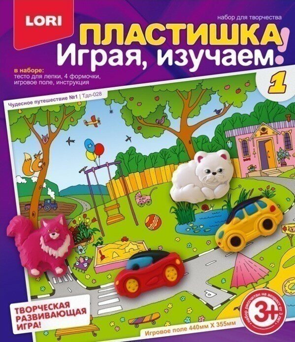 «Пластишка. Чудесное путешествие 1» - это развивающий набор для творчества. Занимаясь лепкой, дети развивают пространственное мышление, мелкую моторику рук и тактильные ощущения. Набор поможет ребёнку узнать основные правила поведения на улице. В комплект входят тесто для лепки, 4 формочки, игровое поле и инструкция. Размер игрового поля (ДхШ) составляет 44х35,5 см. Состав: вода, пищевые соли, мука, красители, консерванты. Рекомендованный возраст: 3 года +