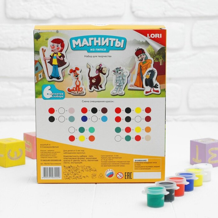 | Комплектация | гипс; пластиковые формы; акриловая краска - 6 цветов; кисть; магнитная лента; инструкция |