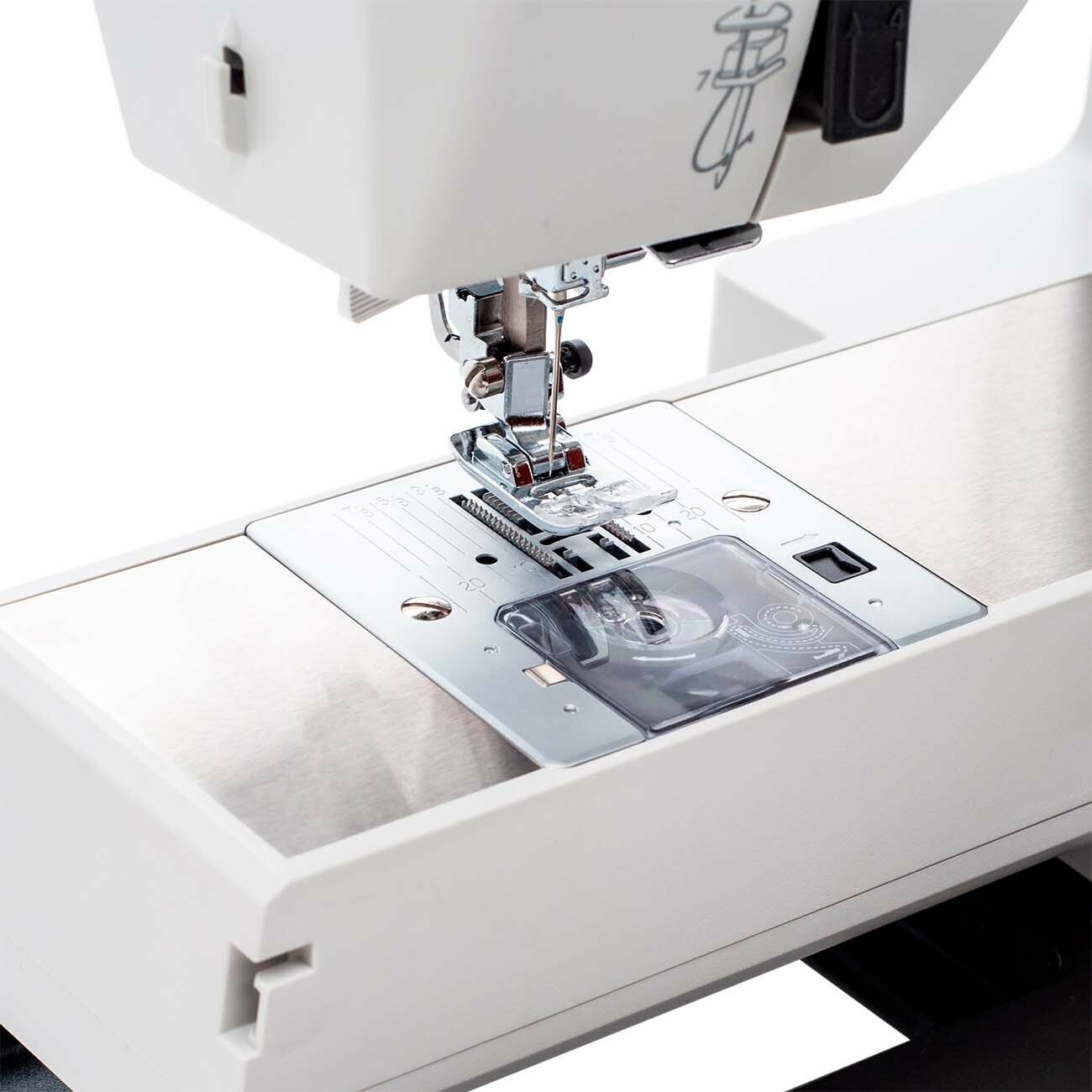 Швейная машина Necchi с ротационным челноком и максимальной скоростью шитья 1000 стежков/мин отличается оригинальным дизайном и компактностью. Нижний трехполосный пятисегментный транспортер положительно влияет на работу с разными типами легких и средних по плотности тканей благодаря большой площади прилегания. Катушка расположена горизонтально, типовой нитевдеватель позволит работать с нитью без усилий. Максимальная потребляемая мощность устройства – 90 Вт. 34 возможных режима работы отвечают за прокладывание различных швов и автоматическое выметывание петель. Съемная рукавная консоль упростит работу с узкими частями изделий.