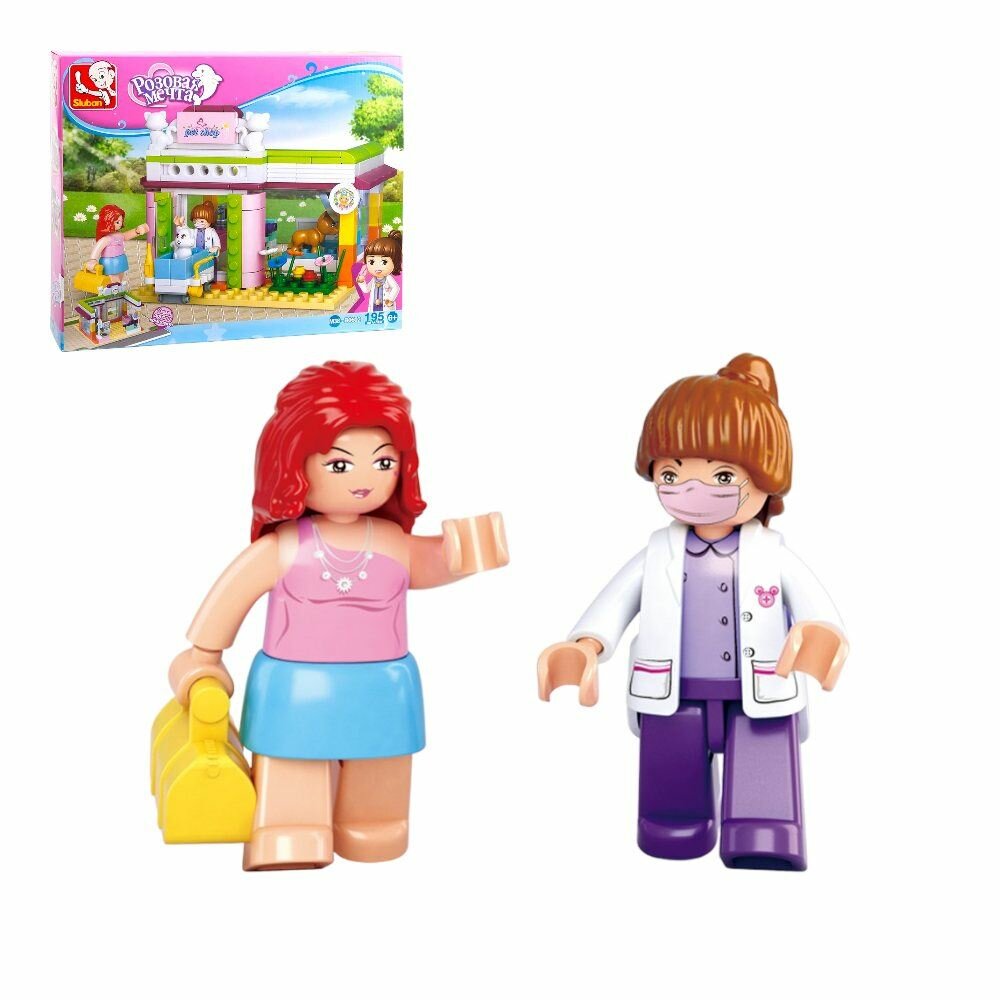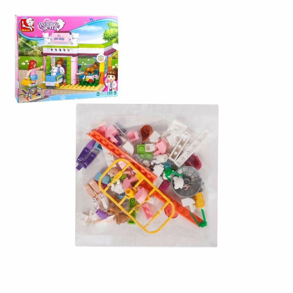 Конструктор SLUBAN Розовая мечта.Зоомагазин 195 деталей в коробке развивает творческое мышление, усидчивость и мелкую моторику. Выполнен из безопасных для здоровья ребенка материалов.