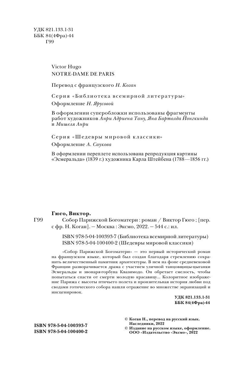 Собор Парижской Богоматери (Гюго Виктор Мари, Коган Надежда Александровна (переводчик)); Эксмо, 2022