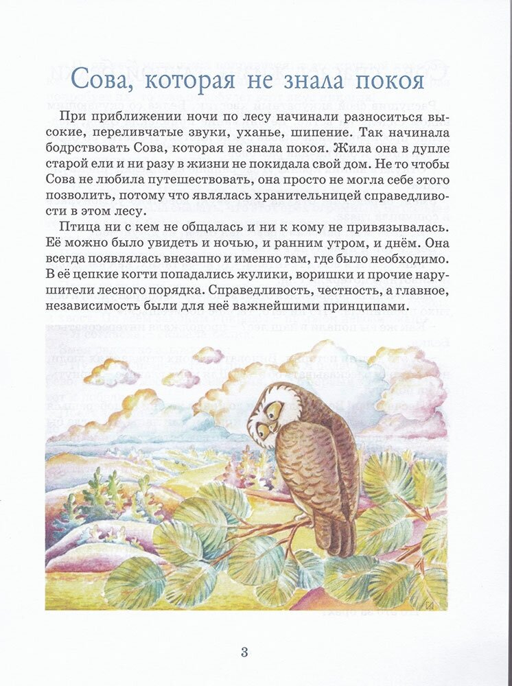 Книга интересная, о доброте, взаимовыручке, о любви. Состоит из нескольких увлекательных историй, в которых сова всегда помогает другим, а в последней истории помощь оказывают ей. Книгу прочитали за один раз, хотя она достаточно объёмная, но шестилетний ребёнок говорил ещё и ещё.