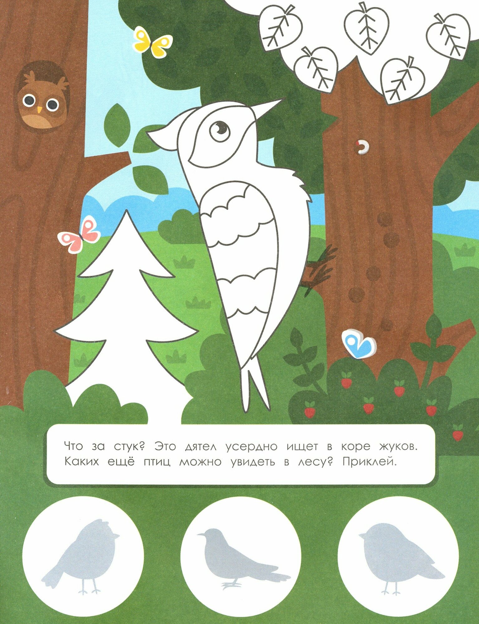 Как работать с этой книгой? Рассмотрите с малышом все иллюстрации, назовите знакомые предметы, обсудите увиденное. После этого предложите раскрасить картинку и к каждой страничке подобрать подходящие наклейки.