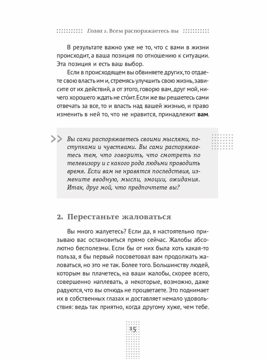 книга о личностном росте, автор в 1000 раз нам говорит о том, что нужно учиться быть хорошим человеком, быть позитивным, ставить цели и достигать их, а корень любого успеха -внутренняя уверенность и спокойствие, которые достигаются через повышение самооценки