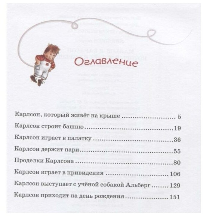 О самом произведении и говорить не чего, поскольку и так все его знают с детства, оно захватывает с любого возраста и его можно перечитывать бесконечно и бесконечно возвращаться в детство и прислушиваться к забавному маторчику волшебного героя Карлсончика))) Хочу подробнее остановиться на оформлении данной книги. Переплет хоть и не твёрдый, но это ни сколько не портит оформление книги, переплет интегральный, т.е. плотная обложка, достаточно прочная и принятая на ощупь. Подкупило именно это издание замечательными иллюстрациями, поскольку на них всеми узнаваемые и привычные герои с самого детства. Ещё огромное достоинство данного издания - крупный шрифт, что делает возможным прочтение ребёнком самостоятельно. В качестве маленького и приятного сюрприза встретили в ней ещё и золотую ленточку-закладку. Вообщем покупкой довольны, рекомендую именно это издание. Хотелось бы продолжение в этой же серии книг.