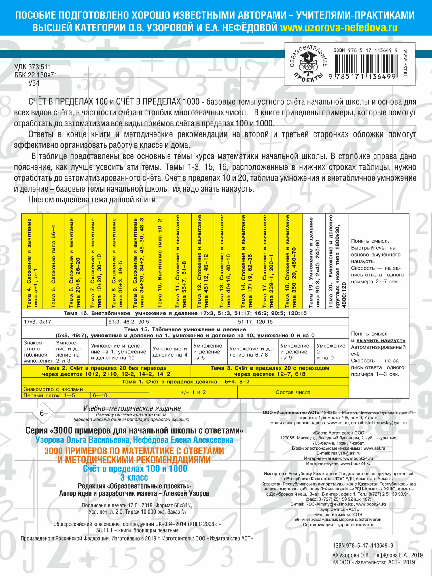 3000 примеров по математике. 3 класс. Счет в пределах 100 и 1000. С ответами и методическими рекомен (Елена Алексеевна Нефедова, Ольга Васильевна Узорова); АСТ, 2019