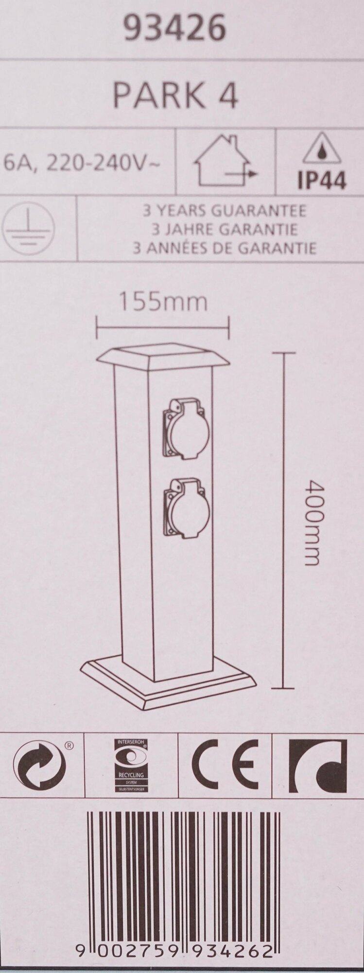 Уличный блок штекерных розеток Park 4 - продукт известной компании Eglo (Австрия).