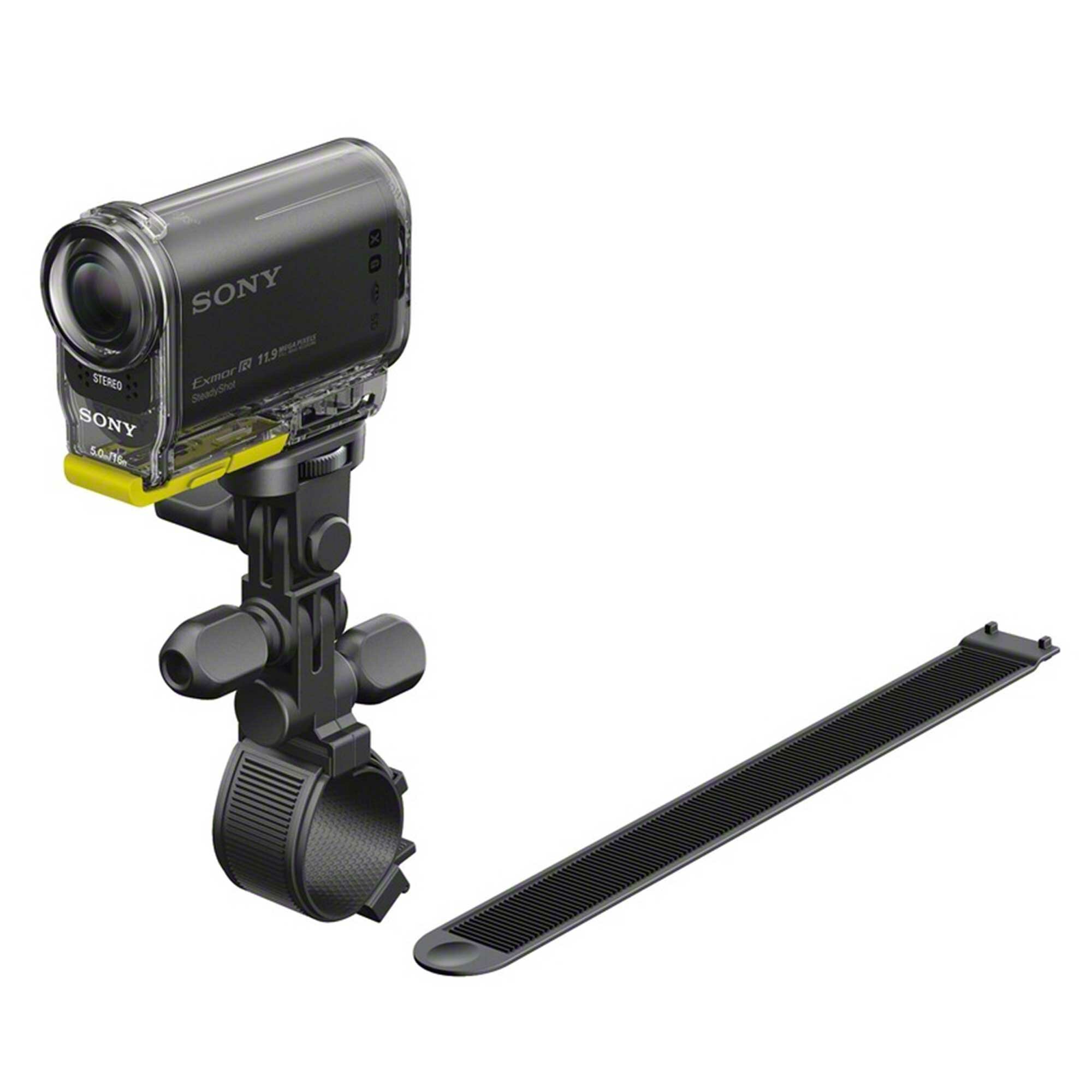 Sony - крепление для велосипедного руля, но также подходит и для других трубок, палок и им подобных объектов цилиндрической формы. Трехосевой шарнирный механизм позволяет направить камеру в любую сторону: на дорогу, на себя, в сторону. Минимальный диаметр трубки: 2 см, максимальный 6.6 см. Не рекомендуется устанавливать на руль мотоцикла из-за сильной вибрации на высокой скорости. Подходит для всех камер Sony Action Cam.