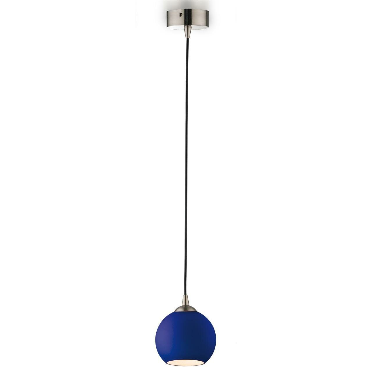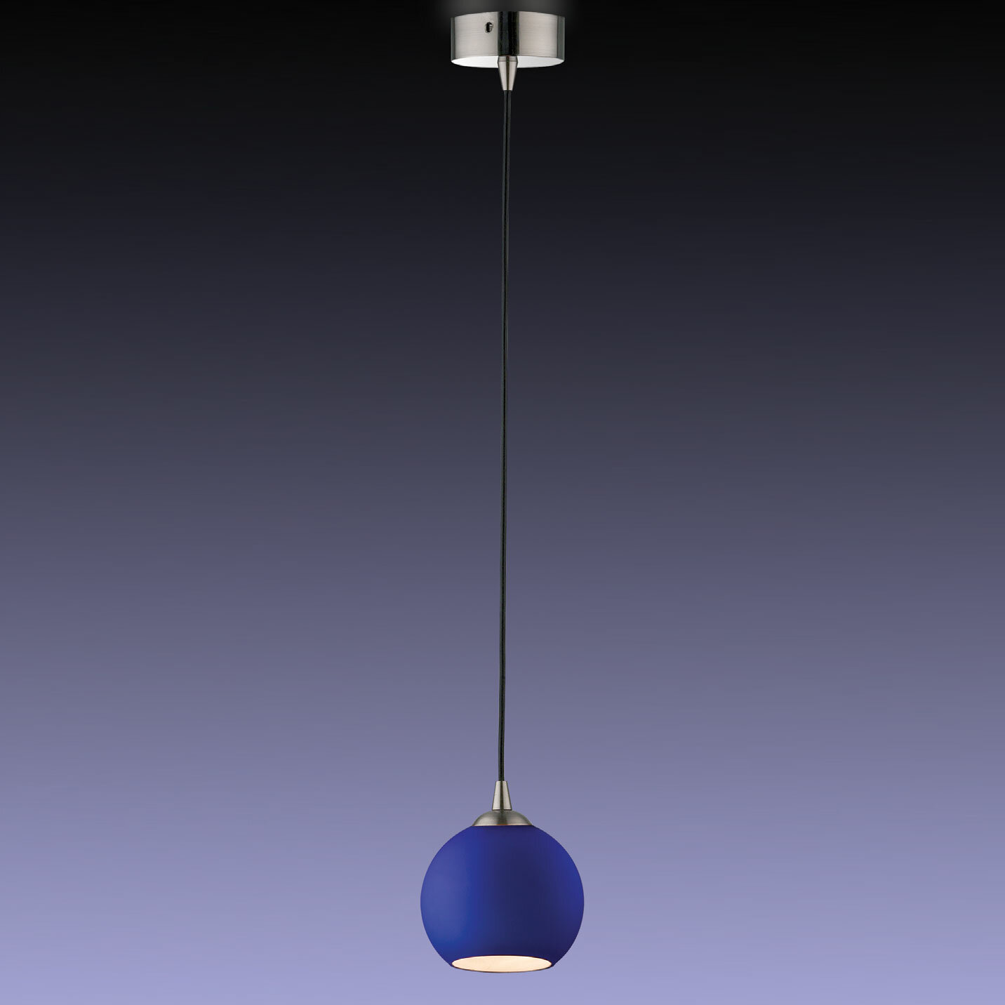 Подвес серии Eruca выполнен в стиле модерн и состоит из стеклянного плафона ярко синего цвета, основания цвета никель и черного шнура. Цоколь E14. Мощность 1*60W. Нет ламп в комлекте.