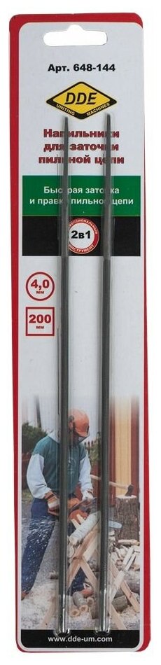 Напильник круглый 4,0 мм - 5/32 DDE используется при заточке и правке пильных цепей, не снимая их с бензопилы.Преимущества Напильник подходит для заточки цепей с шагом 1/4", 3/8 PMN, 3/8 P Длина напильника - 200 мм Диаметр напильника - 4 мм Поставляется в блистере, в комплекте 2 шт.