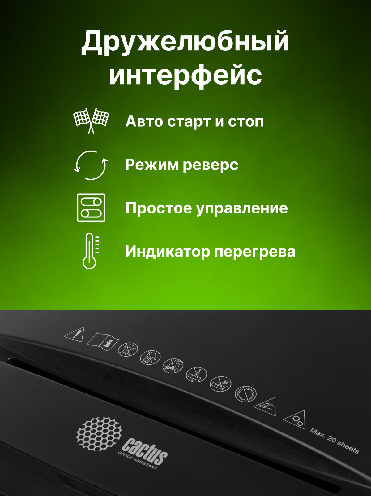 Шредер Cactus (секр.P-4)/фрагменты/20лист./25лтр./скрепки/скобы/пл.карты/CD