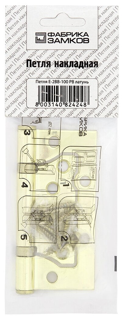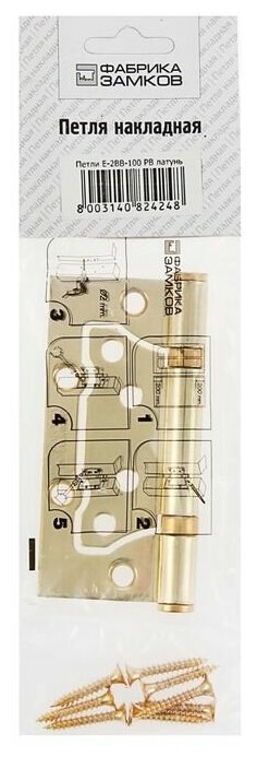 Модель: Петля дверная накладная Фабрика Замков E2BB100 латунь 100х75х2,5 мм