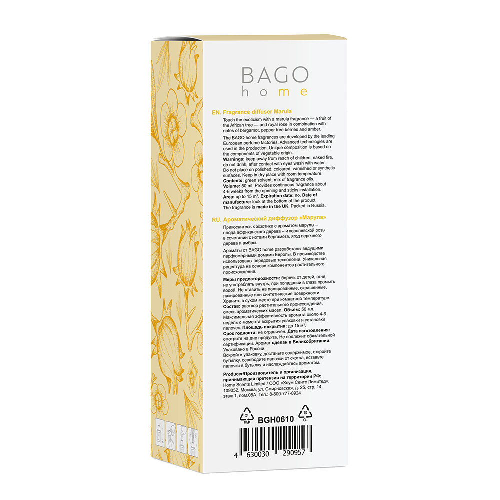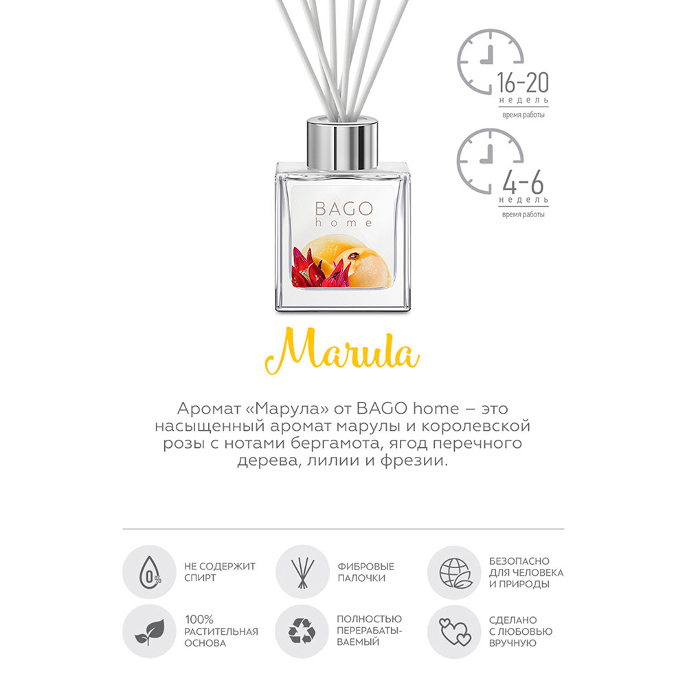 Ароматические свечи и диффузоры BAGO home Диффузор ароматический BAGO home Марула 50 мл