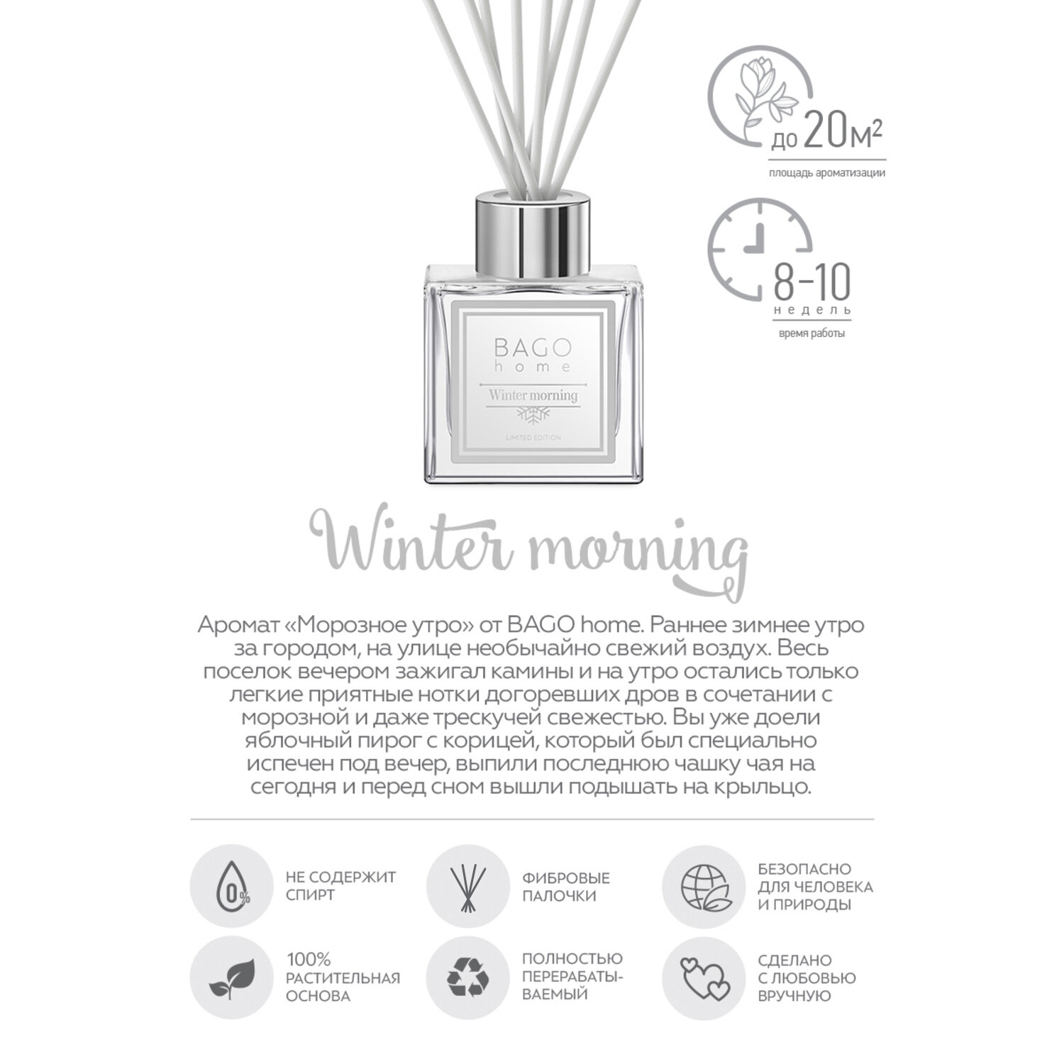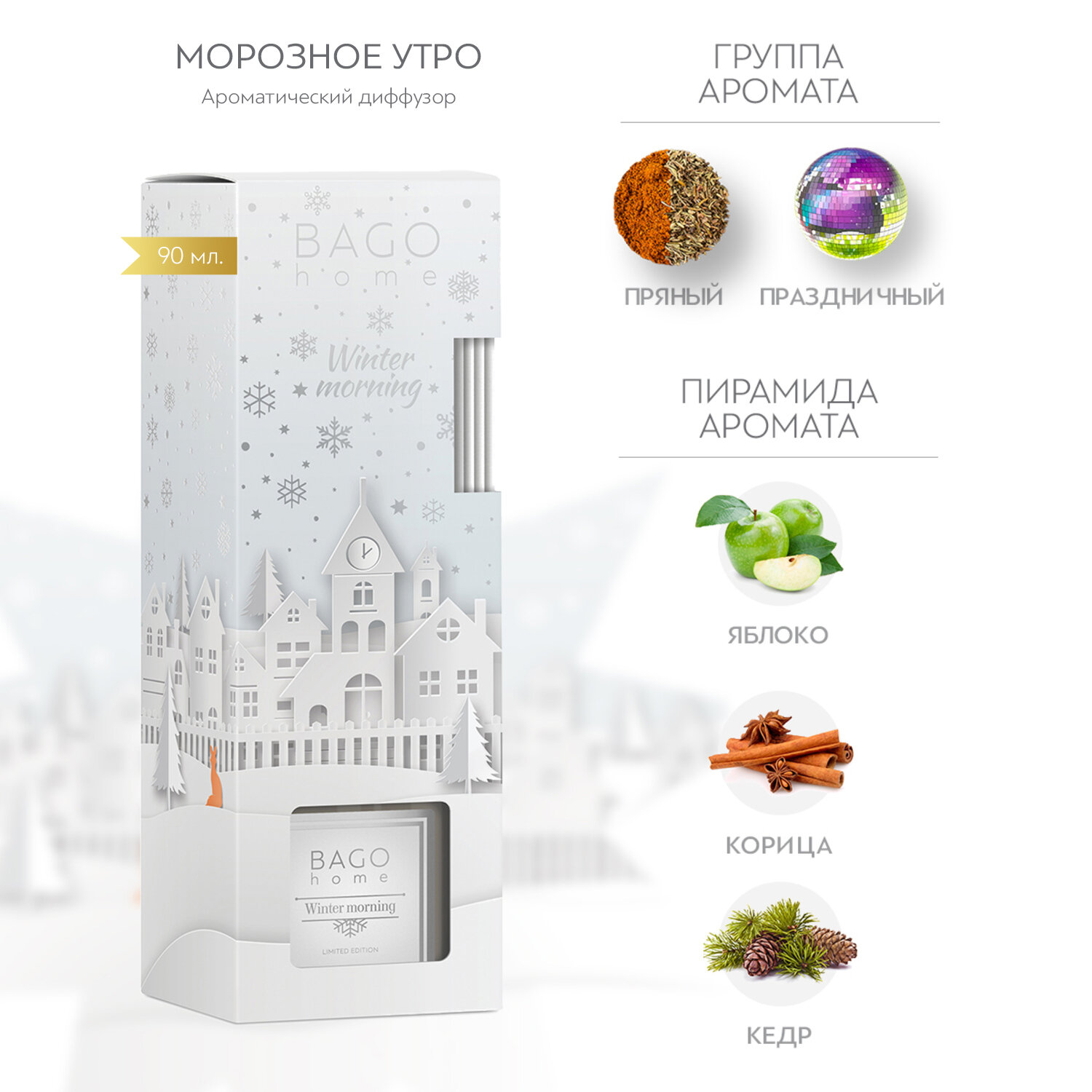 Ароматические свечи и диффузоры BAGO home Диффузор ароматический BAGO home Морозное утро 90 мл