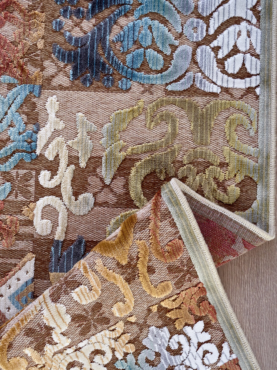 Состав: 45% вискоза, 34% шенилл,20% полиэстер, 1% латекс Жаккардовый разноуровневый тканый гобелен.