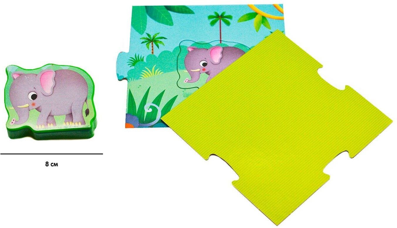 Паззл с объемными пластиковыми 3D-фигурками животных и красочными иллюстрациями. Собирая большой паззл, на месте контурных изображений животных ребенок размещает их объемные пластиковые фигуры с наклейками, в процессе игры изучая животных фермы или джунглей. Пластиковые фигурки животных можно также использовать как формочки для песка или в качестве трафарета - обводить на листе бумаги, а затем раскрашивать. Игра тренирует навыки распознавания контуров, форм и их соотношений с соответствующими животными, развивает логику и мелкую моторику.