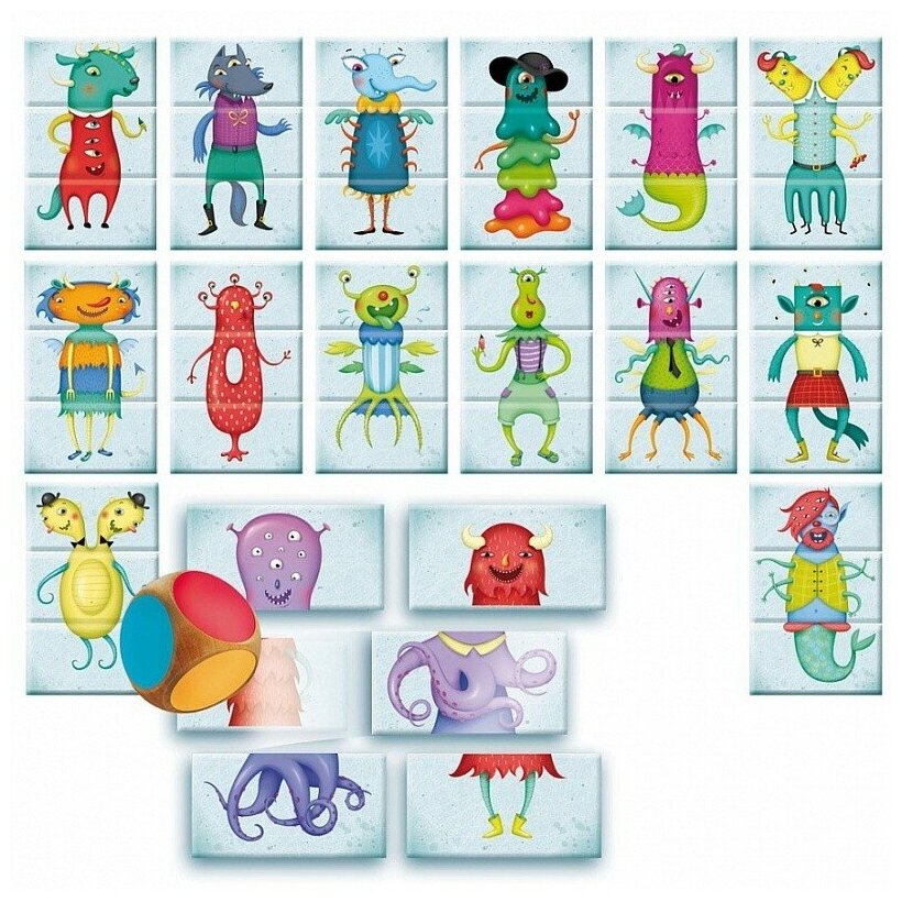 | Состав набора | цветной игральный кубик, 16 фигурок монстров, составленных из 3-х частей |