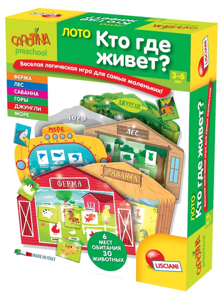 Обучающая настольная игра Lisciani Carotina preschool Лото Кто где живет? (R63659)