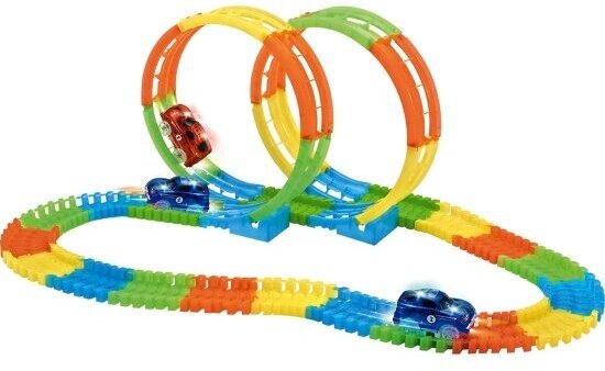 - Очень качественный набор! Все работает, машинки прекрасно цепляются и ездят по мертвым петлям. В темноте светится=)