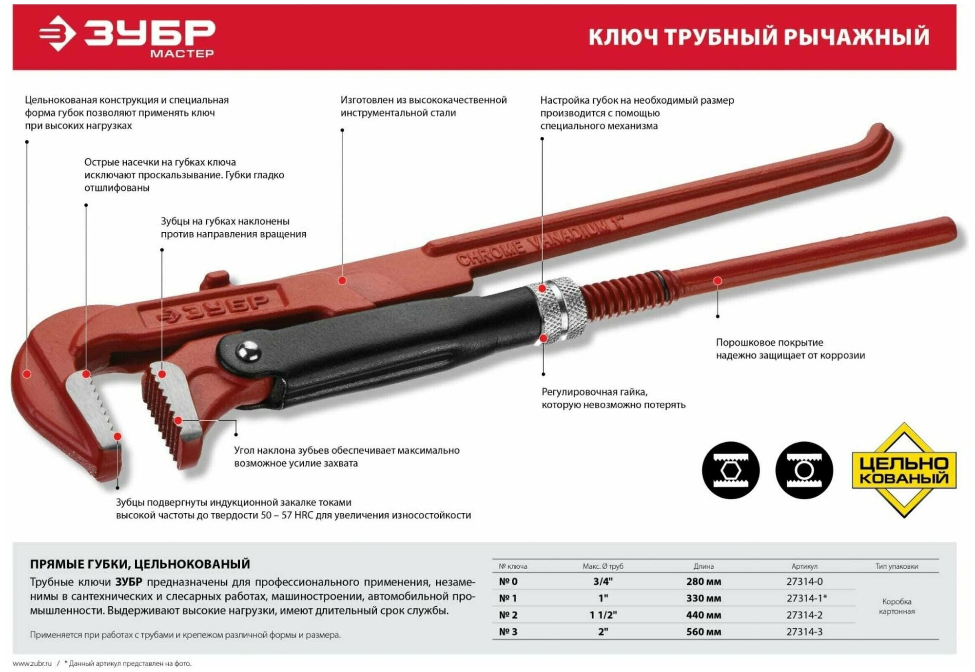 Трубные ключи ЗУБР предназначены для профессионального применения в сантехнических и слесарных работах, машиностроении, автомобильной промышленности и т.д. Выдерживают высокие нагрузки. Длительный срок службы.