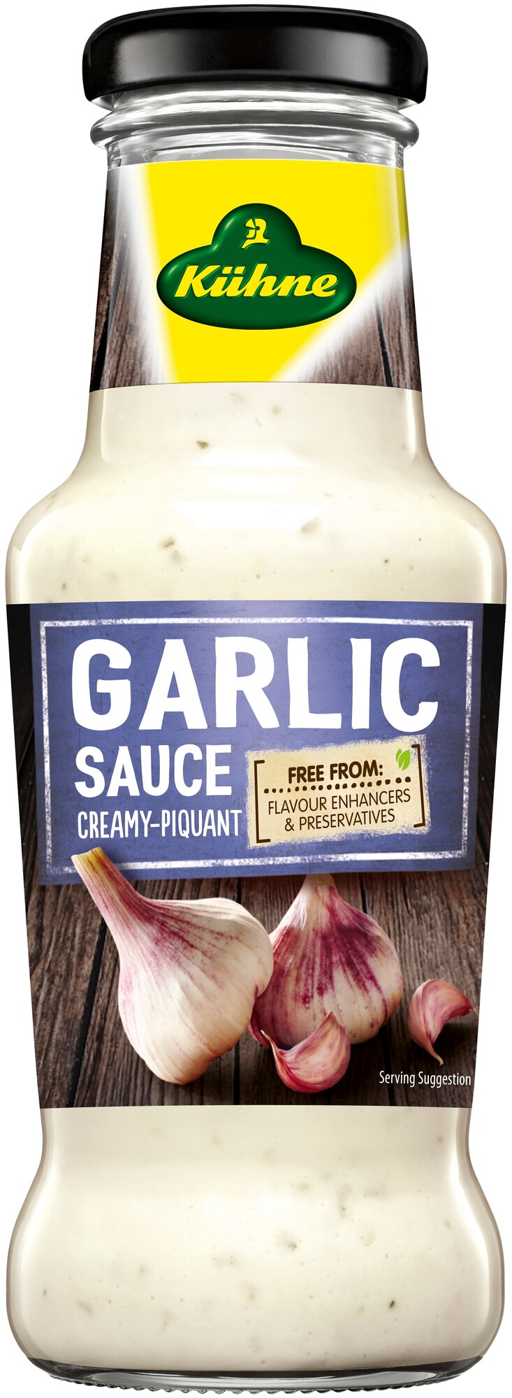 Соус Kuhne чесночный 250мл - это ароматный сливочный соус с чесноком, умеренно острый и насыщенный! Прекрасно подходит к мясу на гриле, бифштексам, куриным крылышкам, рыбе и морепродуктам. В сочетании с легким йогуртом или нежирной сметаной станет отличной заправкой для любого салата. Рекомендуем вам намазать его на хлеб (гренки) и подать к супу, или сделать оригинальный сэндвич, использовать как приправу к голубцам и пельменям. В отличие от свежего чеснока продукт не имеет резкого запаха и послевкусия.
