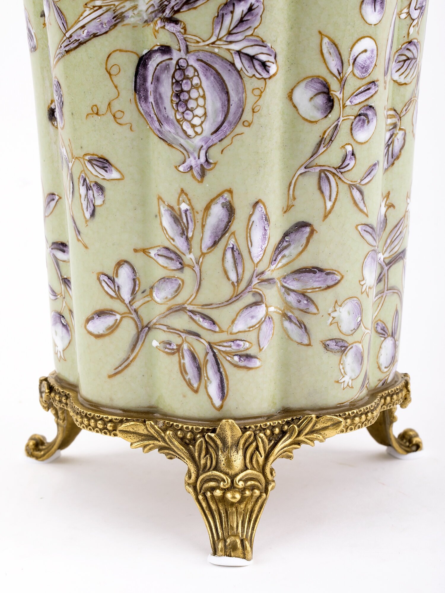 Уникальное изделие ручной работы. При производстве этих художественных изделий из фарфора с бронзой используются вековые традиции китайских мастеров. Видимые трещинки (кракелюры) делаются по уникальной технологии, что придает более благородный вид старинного изделия.