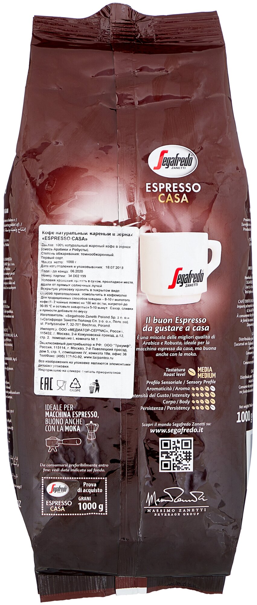 Кофе в зернах Segafredo Espresso Casa грецкий орех сухофрукты 1 кг