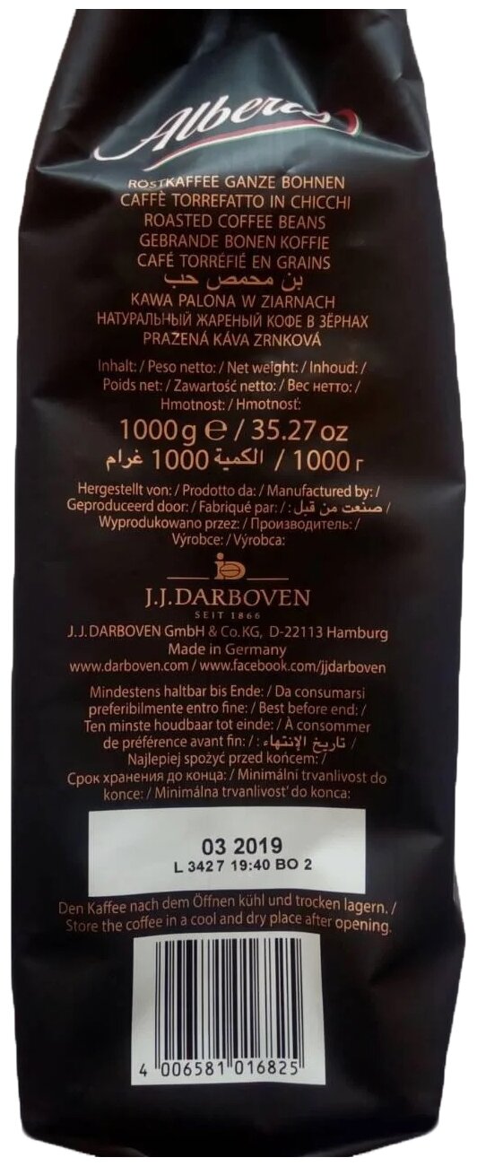 Кофе в зернах Darboven Alberto Caffe Crema классический 1 кг J.J. Darboven