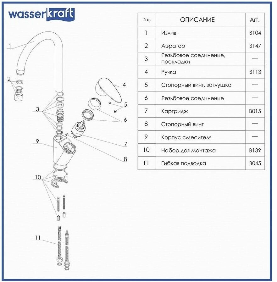 Смеситель для кухни Wasserkraft 3507