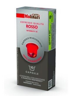 Итальянский кофе Молинари Россо - оптимальная смесь арабики и робусты для приготовления капучино или латте макиато. Баланс между плотностью тела, низкой кислотностью напитка и яркостью аромата здесь доведен буквально до совершенства и делает Молинари Россо прекрасной основой для напитков, содержащих молоко. Капсулы подходят исключительно для капельных кофемашин формата Nespresso