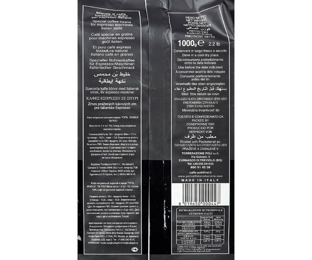 Кофе в зернах Caffe Poli Total Arabica 100% 1 кг