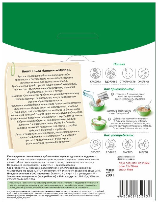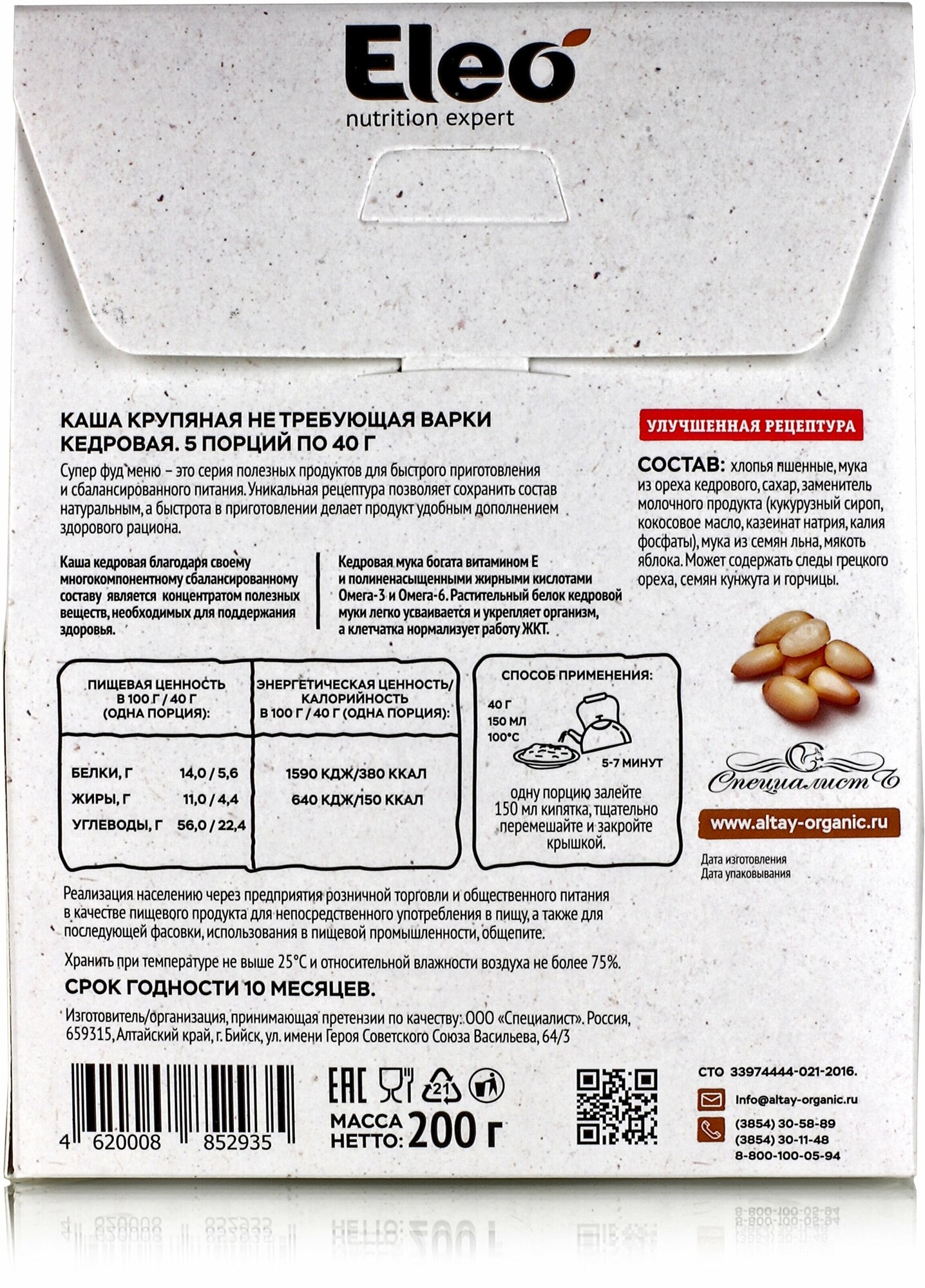 Специалист Сила Алтая Каша кедровая порционная орехи без добавок 200 г