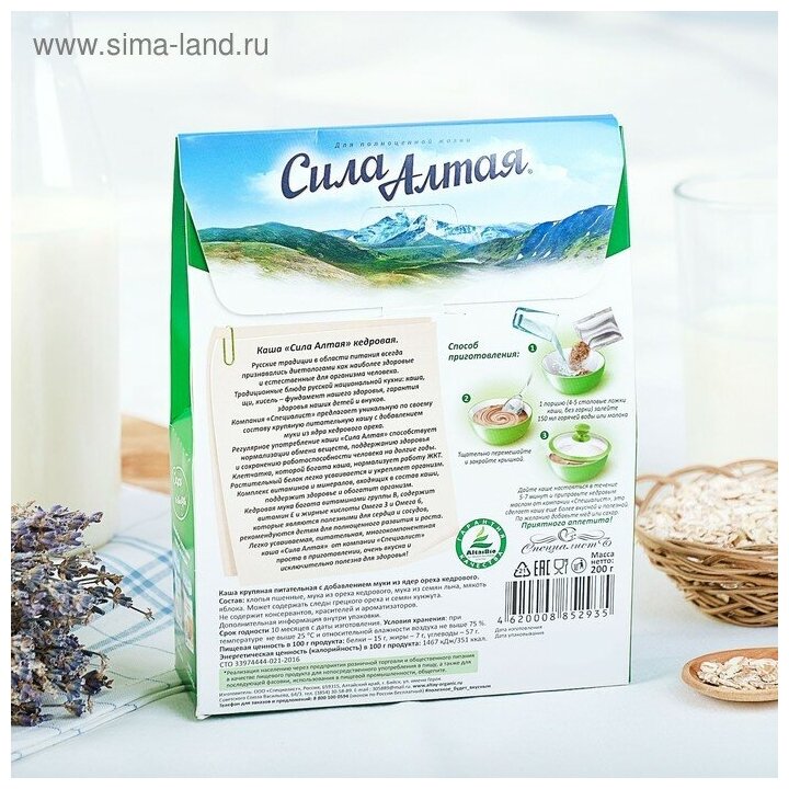 Сервис сравнения цен СкидкаГИД предлагает сравнить цены на товар «Специалист Сила Алтая Каша кедровая порционная орехи без добавок 200 г»