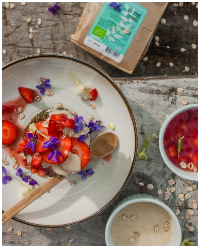 Сертифицированный продукт био органического земледелия произведено под контролем SI-EKO-002. Состав: 100% хлопья ржаные цельнозерновые плющеные. Изготовлены из собственноручно выращенного сырья. Продукт упакован в "зеленую" 100% перерабатываемую упаковку. Цельные ржаные зерна расплющиваются на специальном устройстве, затем подсушиваются и упаковываются. Использование: могут быть употреблены в пищу в сыром виде с йогуртом, кефиром, творогом или соком, для приготовления каши, также запекаются с фруктами, орехами, медом, могут быть использованы в качестве ингредиента при приготовлении хлеба, печенья, мюсли, гранолы, спортивных батончиков, а также для панировки. Приготовление каши: Необходимое количество хлопьев (40-50 гр./на порцию) засыпьте в кастрюлю, добавьте воду или молоко, отварите на медленном огне 15-20 минут, добавьте по вкусу сливочное или оливковое масло, соль, сахар, корицу. Приятного аппетита! Благодаря "длинным" углеводам усваиваются существенно медленнее других злаковых и надолго утоляют голод. на продолжительное время стабилизируют уровень содержания сахара в крови. содержат калий, кремний, медь, молибден, титан, фтор и цинк, богаты витаминами Е, В1, В3, В8 и пищевыми волокнами. Пищевая/энергетическая ценность на 100 гр. продукта, 319 ккал, белки-8,8 гр, углеводы-60,7 гр, в т. ч. сахара-0,9 гр, жиры-1,7 гр, в т. ч. насыщенные жирные кислоты-0,3 гр, клетчатка/пищевые волокна-13,2 гр, натрий-0,04 гр. Срок годности 10 месяцев. Произведено в Словении.