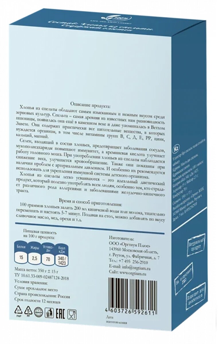Сервис сравнения цен СкидкаГИД предлагает сравнить цены на товар «Оргтиум Хлопья из спельты 350 г»