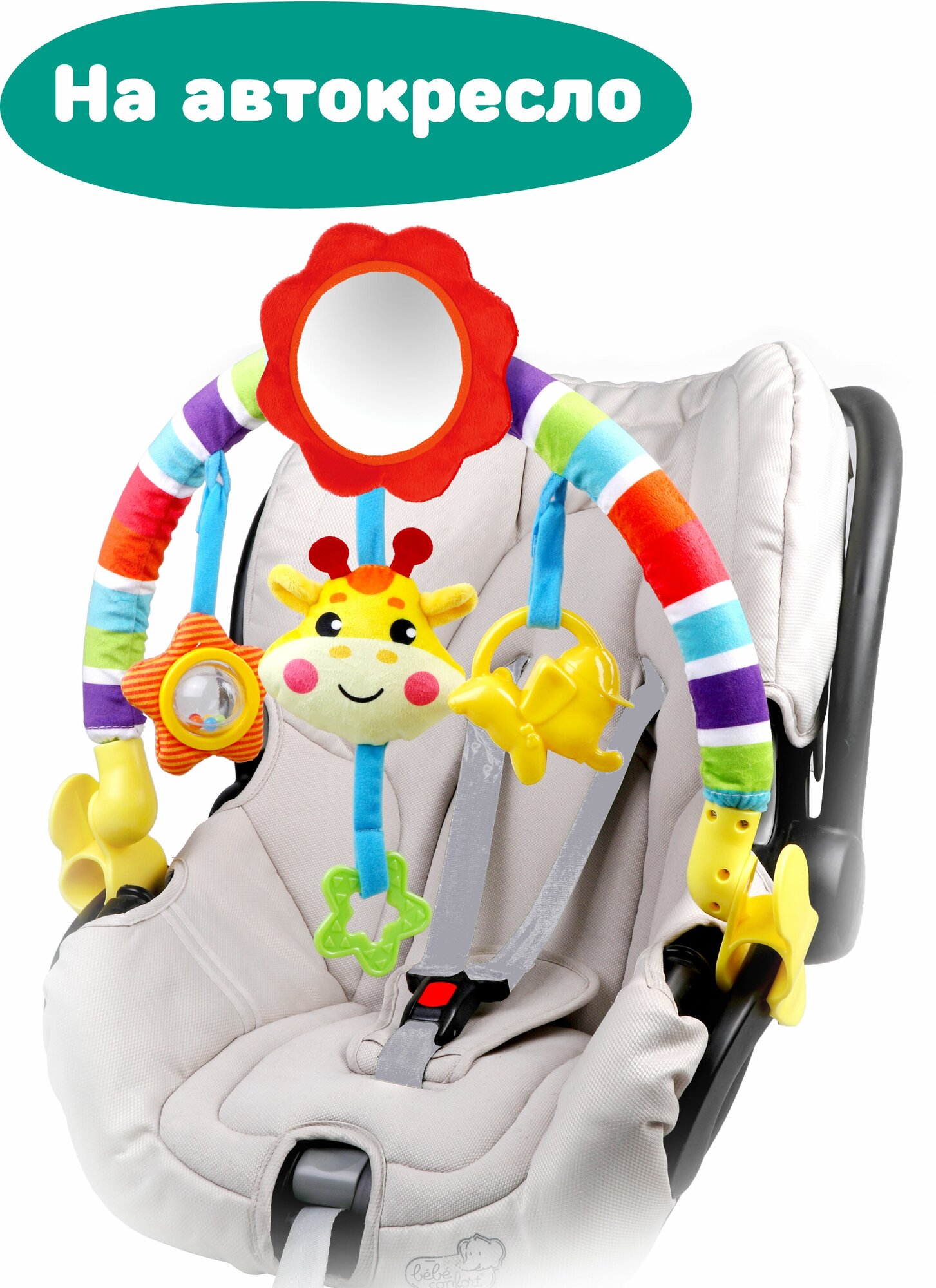 - Яркие съемные игрушки. Ребёнок доволен.