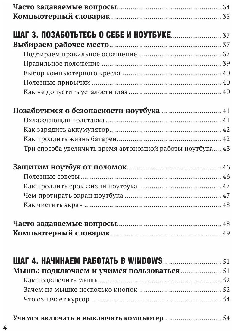 Самоучитель по работе на ноутбуке от Анастасии Мартюшевой содержит всю необходимую информацию для новичков: начало работы, базовые операции с файлами, создание папок, выход в интернет, прослушивание музыки и просмотр видео, а также использование программ для общения. Эта книга прекрасно подходит для пожилых людей, поскольку каждая глава в ней снабжена большими иллюстрациями и четкими пошаговыми инструкциями.