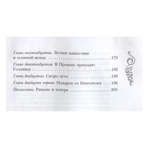 Питеру Мейлу удавалось так описывать свою жизнь в Провансе, что на глаза наворачиваются слезы умиления, а юмор вызывает искренний смех. Прекрасная книга, в которой очень по-доброму и душевно написано о людях, традициях, менталитете, кухне, вине, природе и многом другом.